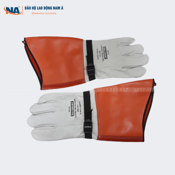 Găng tay dài 16 inch, nặng 700g, được may bằng chỉ polyester, có dây đai điều chỉnh với khóa phi kim loại giúp ôm tay chắc chắn. Đạt tiêu chuẩn ASTM F696, đây là lựa chọn lý tưởng để bảo vệ găng cách điện cao thế, đảm bảo an toàn và độ tin cậy cho người lao động điện.